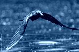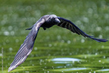 Carrion crow (Corvus corone) in flight over river Thames, London, UK