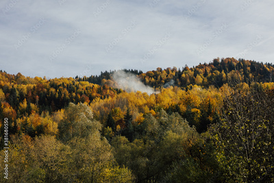 Majestic landscape with autumn trees in forest. Autumn landscape with colourful forest.