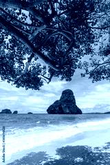 Paradise beach on tropical island with blue sky at Railay beach, Krabi province, Thailand