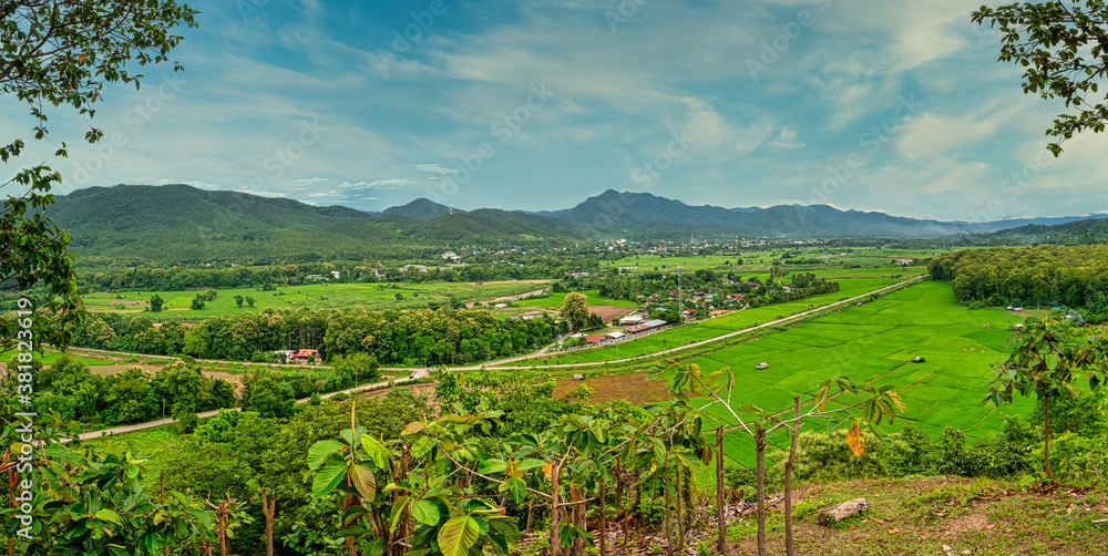 Panoramic view of Mae Sariang district, Mae Hong Son Province, Thailand.