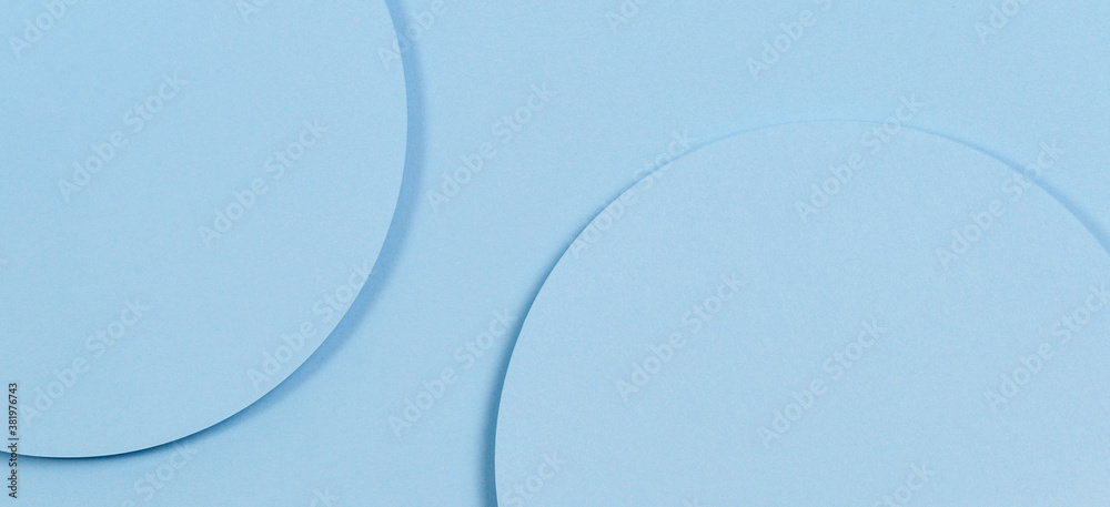 Abstract colored paper texture background. Minimal monochrome geometric shapes light blue color. Top view