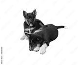Dog Lapponian herder (Lapinporokoira or Lapp Reindeer dog or Lapsk Vallhund) . Two little puppies