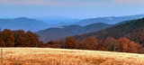 Picturesque autumn mountains with red beech forest in the Carpathian mountains. Landscape photography