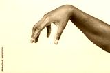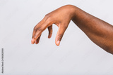 African american black man hand hanging something blank isolated on a white background. Close-up.