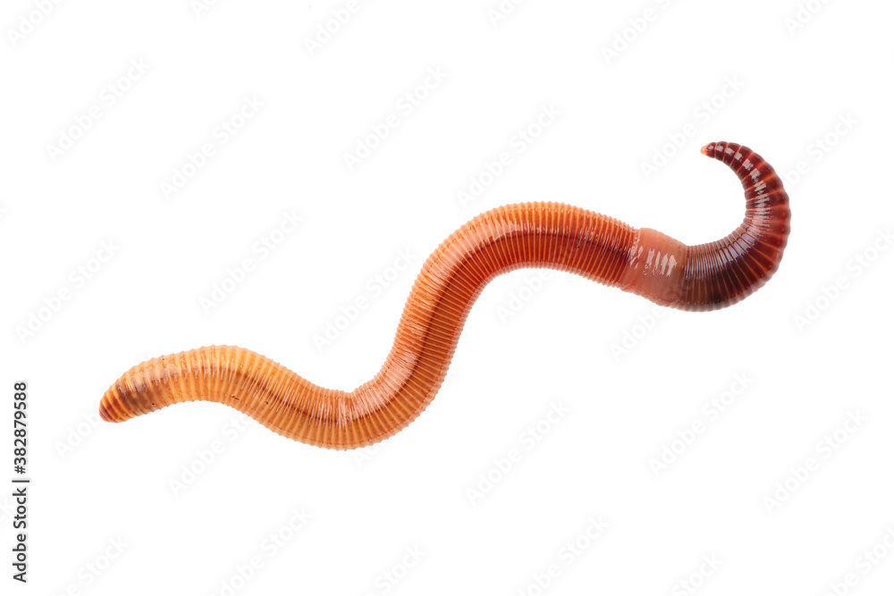 Macro shot of red worm Dendrobena, earthworm live bait for fishing isolated on white background.