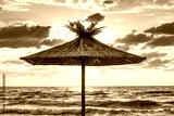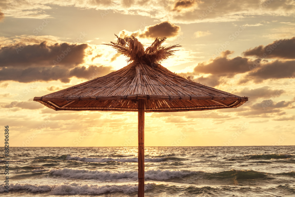 Straw umbrella on tropical sea beach