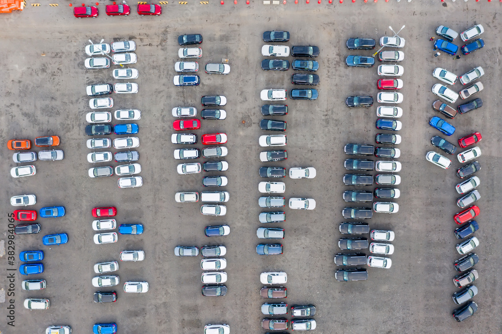 An aerial view of a new car parking area.