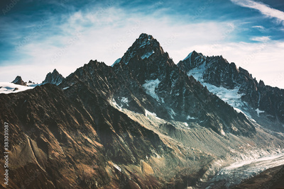 Incredible view of mountain peak in French Alps. Monte Bianco range, Mont Blank massif, France. Landscape photography