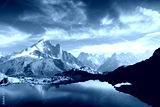 Incredible view of clear water and sky reflection on Lac Blanc lake in France Alps. Monte Bianco mountains range on background. Landscape photography, Chamonix.
