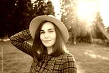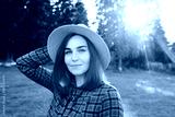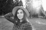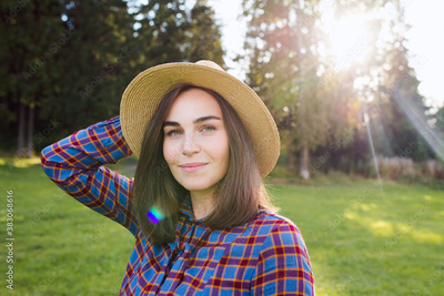 portrait of a beautiful woman in a straw hat in sunny day outdoors