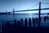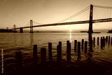 Sun rising behind Bay Bridge via The Embarcadero of San Francisco.