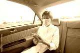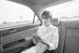 Asian elderly woman wear face mask in car or taxi prevent from covid-19 pandemic illness crisis. New normal and social distancing concept