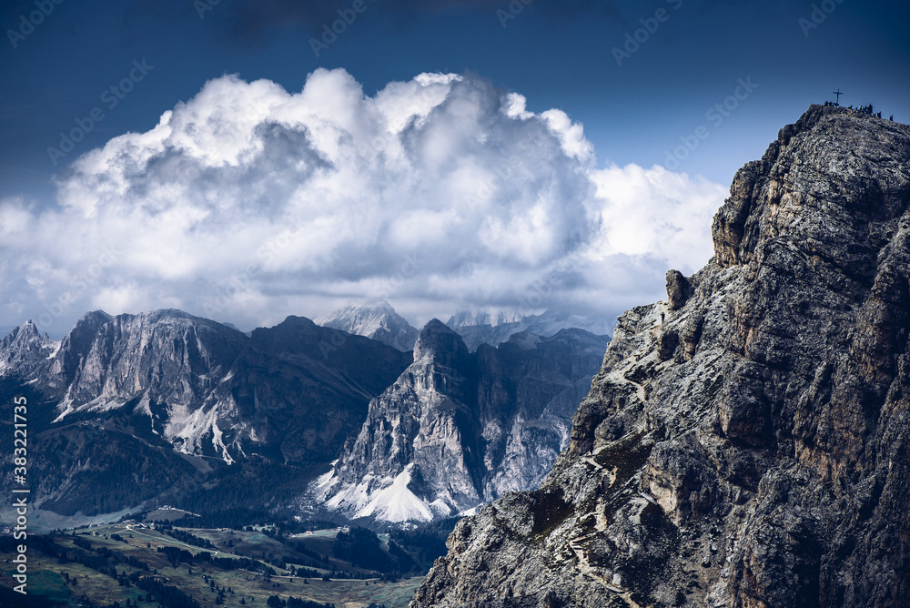 People on Little Lagazuoi peak, Dolomites UNESCO