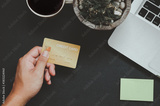 hand credit card top view