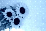 Beautiful yellow sunflowers on a delicate beige textile flat lay layout with copy space, rustic style composition.