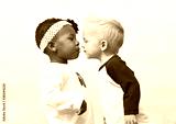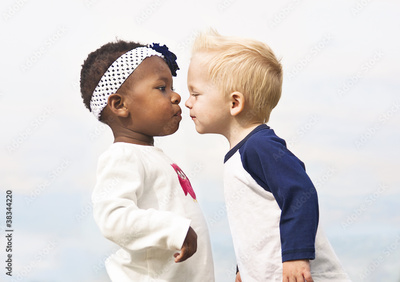 Diverse Little Kids about to Kiss