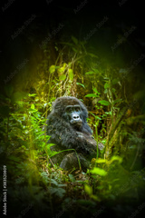 Portrait of a mountain gorilla (Gorilla beringei beringei), Bwindi Impenetrable Forest National Park, Uganda.