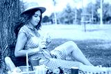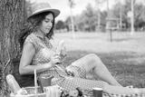 Beautiful young woman having picnic.