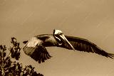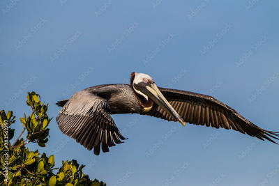 American brown pelican in full flight.