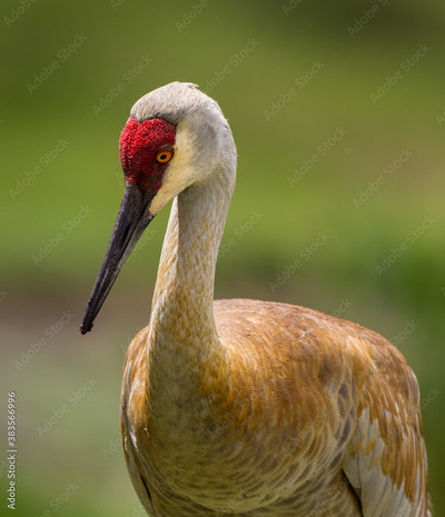 Mother sandhill crane watches over her young.