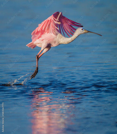 Roseate spoonbill takes off.