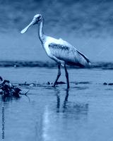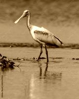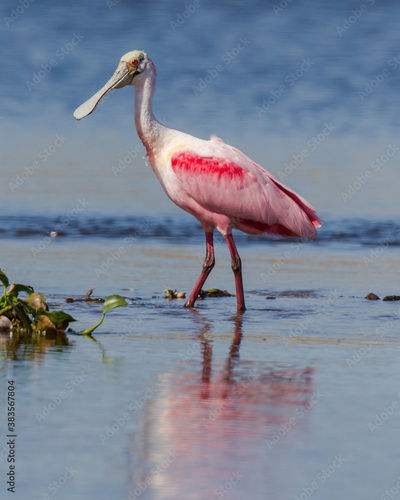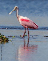 Roseate Spoonbill wading in Myakka River.