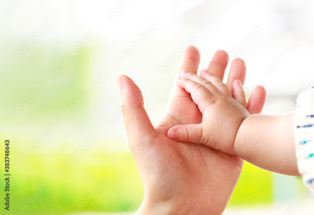母親と赤ちゃんが手をつなぐ 親子の触れ合い