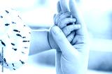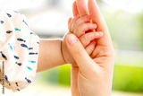 母親と赤ちゃんが手をつなぐ 親子の触れ合い