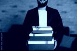 Happy smiling bearded man holding Christmas gifts in hands. Portrait of an excited young man holding many gifts in red boxes.