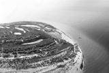 Lonely yacht near the beach on the coast of Black sea in Dgarilgach island, Ukraine. Landscape photography
