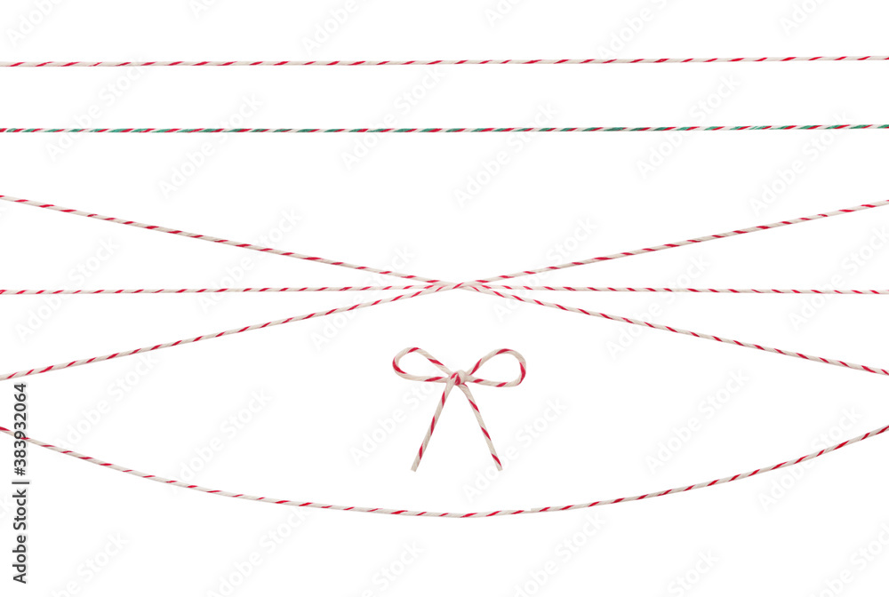 Twine rope isolated set.Parcel decor.Christmas holiday package decoration.Braided string,ribbon.