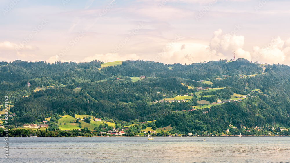 Landscape of Lake Constance coast, scenic view from Lindau, Germany.