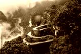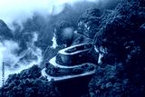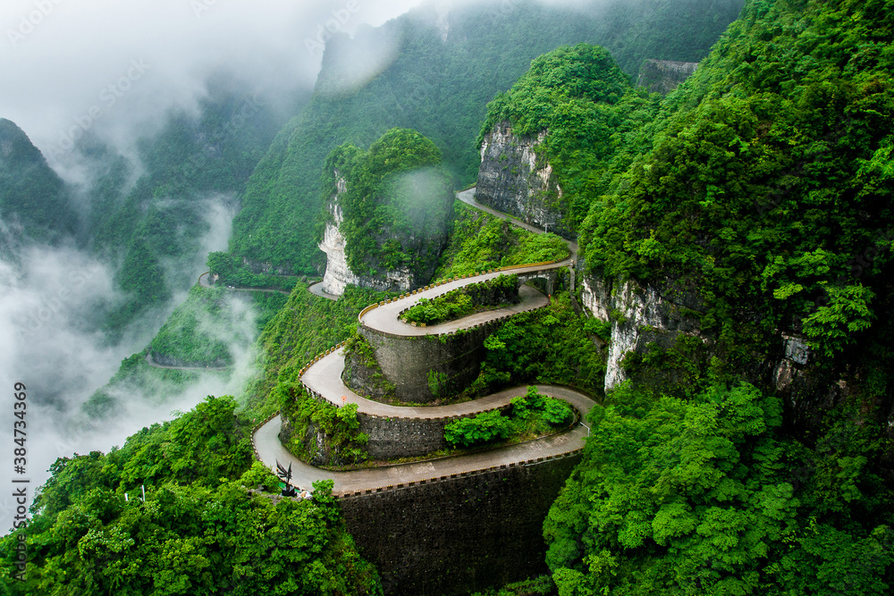 The winding road of Tianmen mountain national park (Zhangjiajie) in clouds mist, Hunan province, China