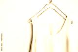 ハンガーにかけた白かベージュのタンクトップと白バックとコピースペース