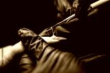 Manicure nail paint with thin brush, Nails artist polish, modelation gel. Beautician Salon, Manicure, Nails Polish Procedure