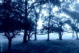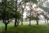 Jesienny krajobraz Doliny Narwi spowity mgłą, Podlasie, Polska
