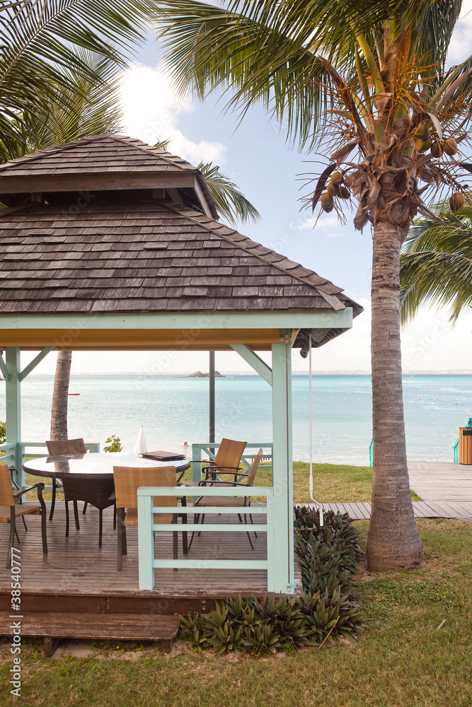 Carbet sur la plage d'Anse Marcel à Saint Martin