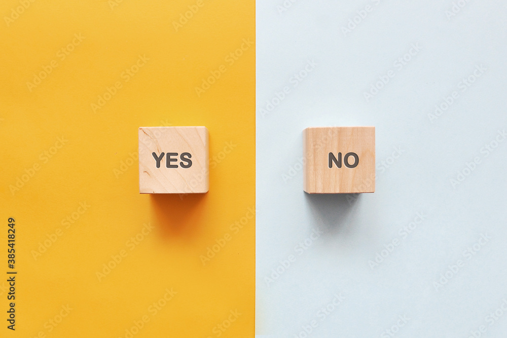Words: Yes and No on wooden cubes. Choosing between Yes and No in life