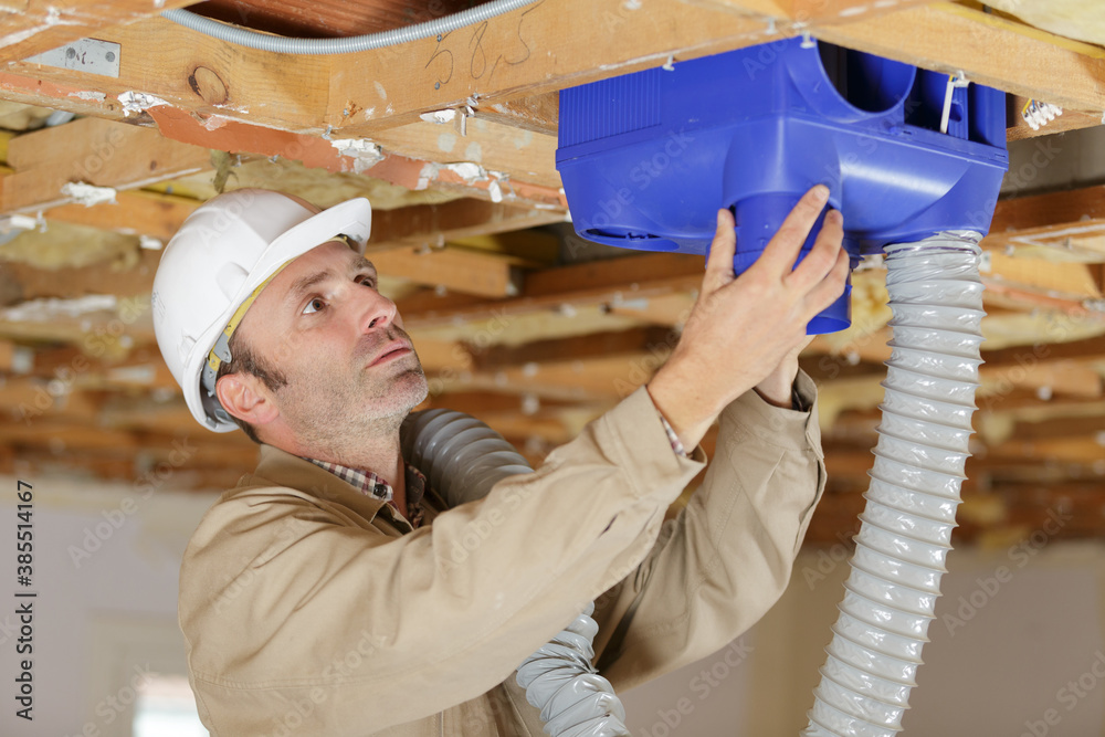 builders working on house ventilation pipes