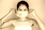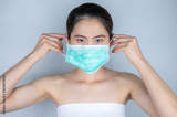 Asian woman wearing surgical mask for protect bad air pollution of virus disease.