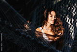 Attractive young woman is relaxing outdoor while lying in hammock. Beauty treatment concept.