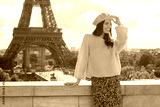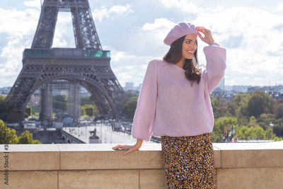Beautiful young woman is traveling around the Paris. Visiting the eiffel tower.
