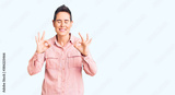 Young woman with short hair wearing casual clothes relaxed and smiling with eyes closed doing meditation gesture with fingers. yoga concept.