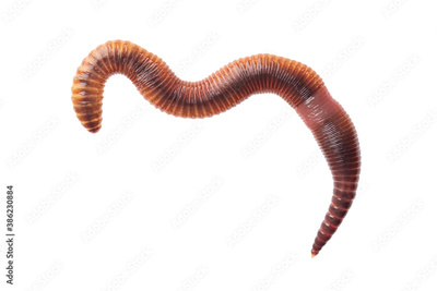 Macro shot of red worm Dendrobena, earthworm live bait for fishing isolated on white background.