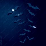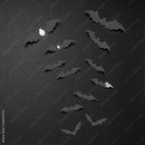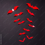 Halloween composition. Flock of red bats on black background. Happy halloween, trick or treat party concept. Flat lay, top view, copy space