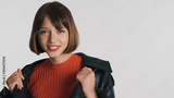 Pretty cheerful girl with bob hair feeling surprised smiling on camera isolated on white background