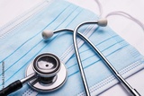Medical mask and chart. Coronavirus statistics of daily growth