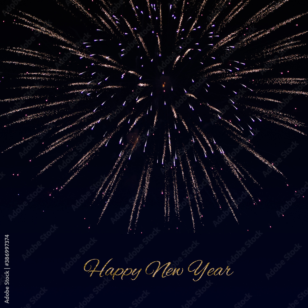Fireworks with a dark black background, Bright beautiful colorful firework. Greeting card for 2021, happy new year
