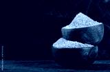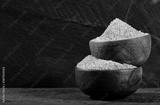 Organic brown sugar in two wooden bowls - Saccharum officinarum