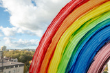 Colorful rainbow painted on window during coronavirus infection quarantine at home. Symbol of hope